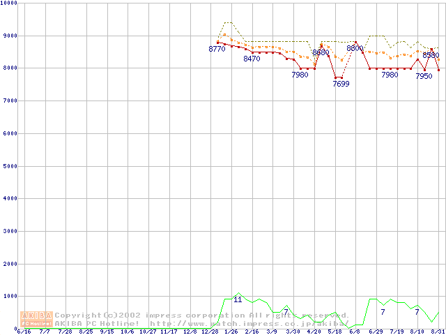 Socket 370 (PGA,FSB 133MHz,L2 64KB)の最安値推移
