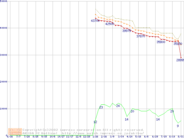 Socket 370 (FC-PGA2,FSB 133MHz,L2 512KB)の最安値推移
