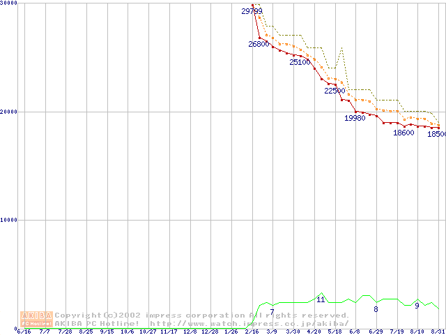 WD Caviar (5400rpm,UltraATA/100)の最安値推移