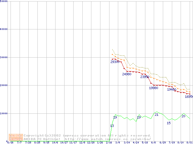 Athlon MP 1800+ (1.53GHz) リテールパッケージの価格推移