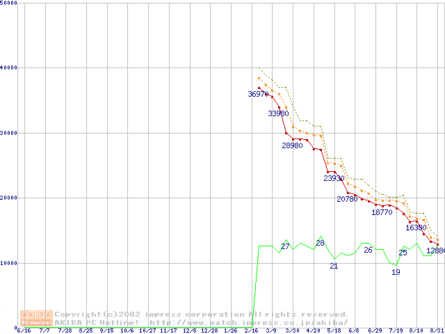 Athlon XP 2000+ (1.67GHz) リテールパッケージの価格推移