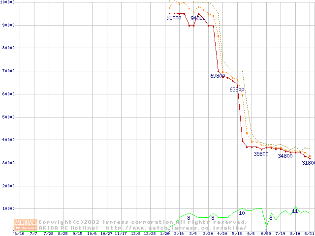 Socket 603 (micro-PGA,L2 512KB,Hyper-Threading,Prestonia)の最安値推移
