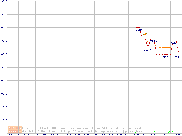 PC3200(DDR400) DDR SDRAM DIMMの最安値推移