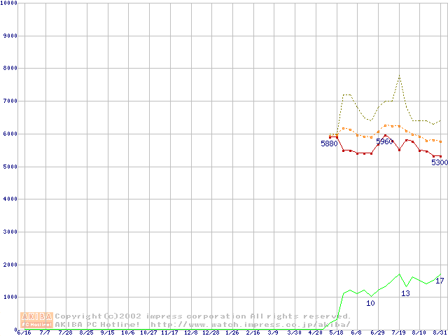 PC800-40 DRDRAM RIMMの最安値推移
