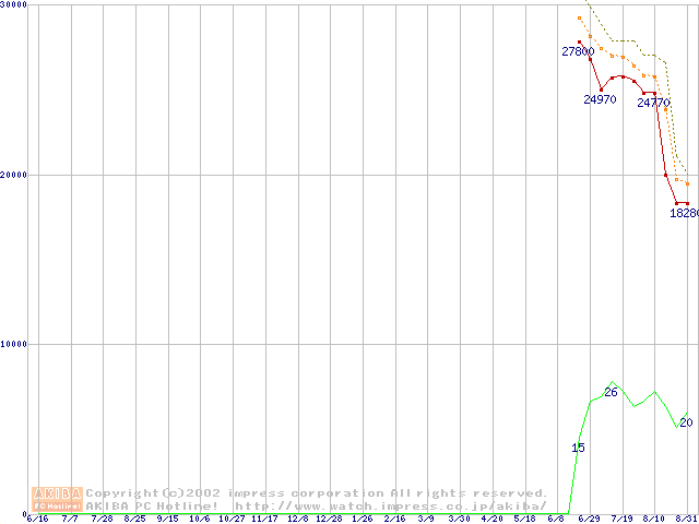 Socket A (OPGA,FSB 266MHz,L2 256KB)の最安値推移