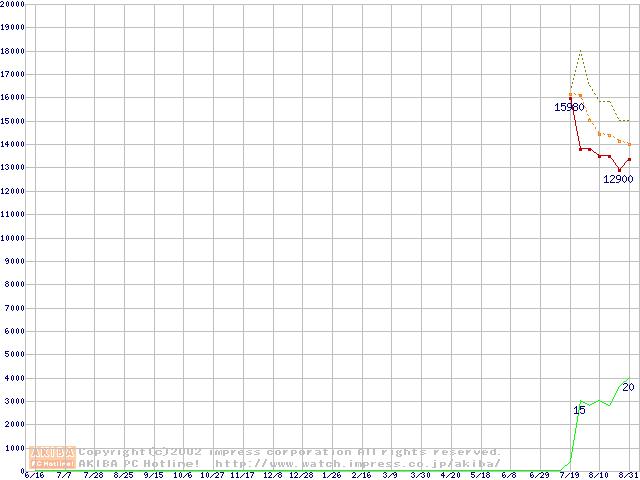 PC1066 DRDRAM RIMM4200(32bit)の最安値推移