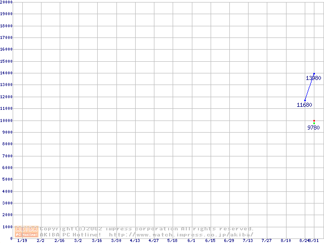 | [↑前グラフ]: | DiamondMax Plus D740X (7200rpm,UltraATA/133,40GB/Platter)の最安値推移 |