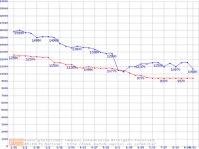 | [↓次グラフ]: | Fireball 3 (5400rpm,UltraATA/133)の最安値推移 |