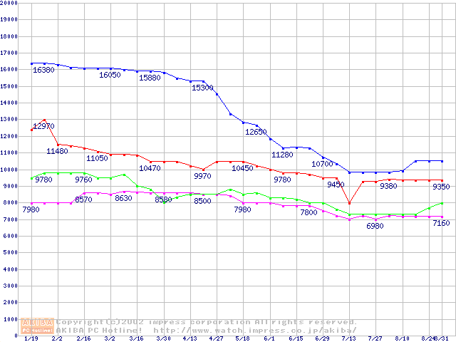 | [↓次グラフ]: | WD Caviar(Special Edition) (7200rpm,UltraATA/100,8MB)の最安値推移 |