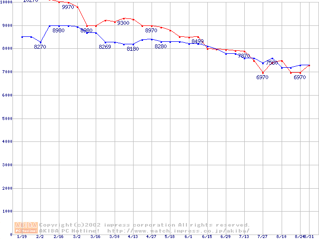 | [↑前グラフ]: | WD Caviar (5400rpm,UltraATA/100)の最安値推移 |