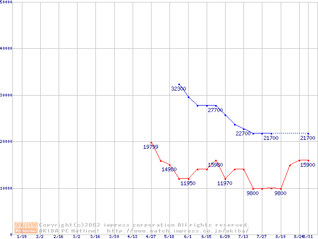 | [↓次グラフ]: | PC3200(DDR400) DDR SDRAM DIMMの最安値推移 |