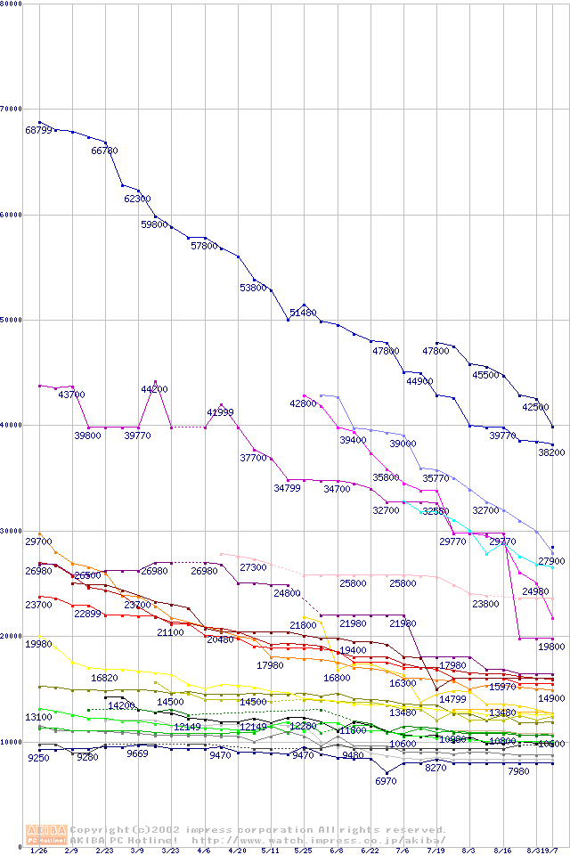 CPU主要製品の最安値推移