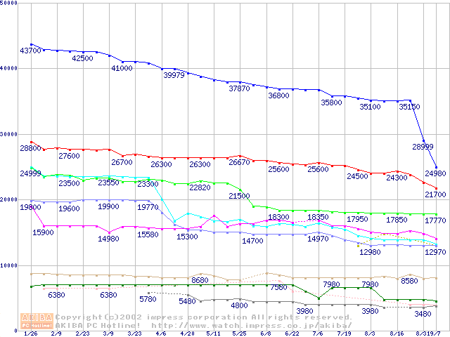 Socket 370・FSB 133MHzの最安値推移