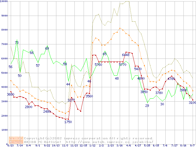 メモリ主要製品の最安値推移