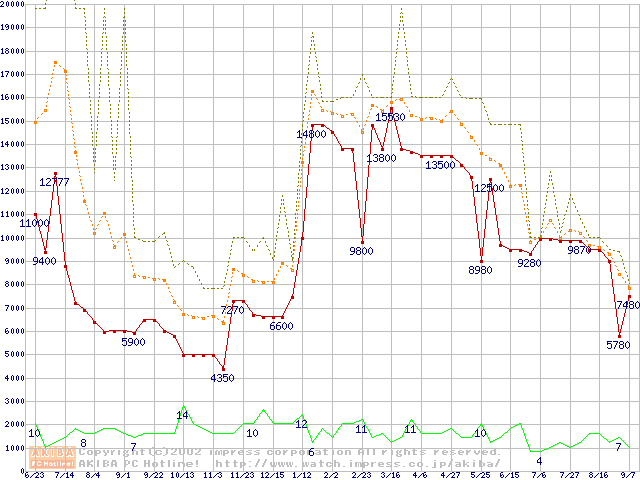 PC100 SDRAM DIMM CasLatency=2の最安値推移