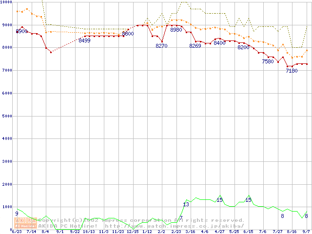 HDD主要製品の最安値推移