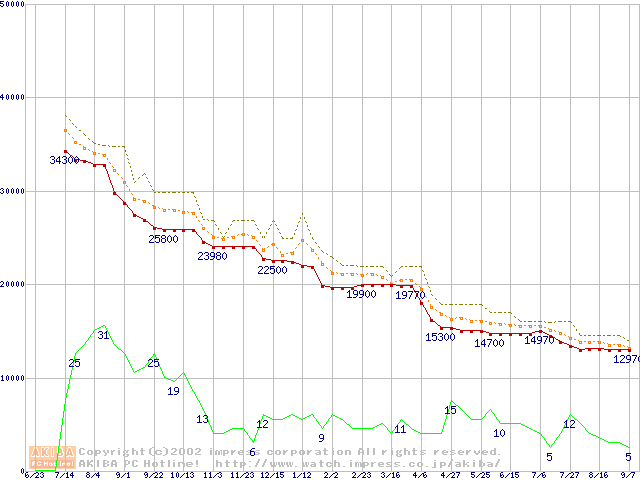 Pentium III 1.13AGHz FC-PGA2 リテールパッケージの価格推移