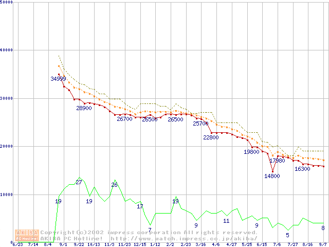 WD Caviar (7200rpm,UltraATA/100,2MB)の最安値推移