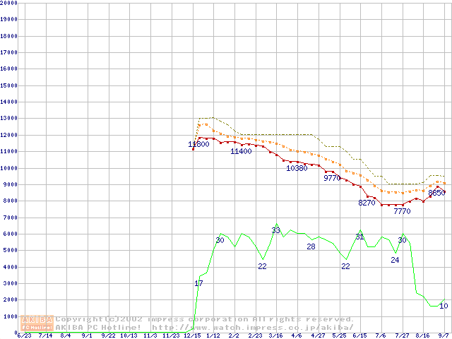 DiamondMax Plus D740X (7200rpm,UltraATA/133,40GB/Platter,流体軸受)の最安値推移