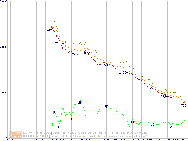 Socket A (OPGA,FSB 266MHz,L2 256KB)の最安値推移