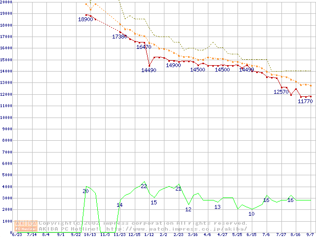 MKシリーズ (9.5mm,4200rpm)の最安値推移