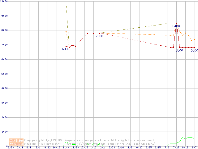 Socket A (OPGA,FSB 200MHz,L2 256KB)の最安値推移