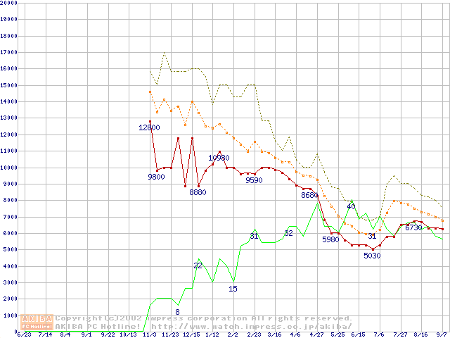 PC2700(DDR333) DDR SDRAM DIMMの最安値推移