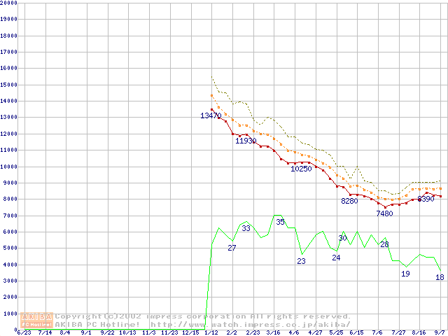 Deskstar 120GXP (7200rpm,UltraATA/100 2MB)の最安値推移