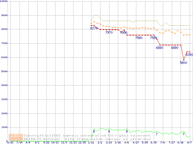 Socket 370 (PGA,FSB 100MHz,L2 64KB)の最安値推移