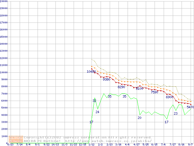 Celeron 1A GHz FC-PGA2 リテールパッケージの価格推移