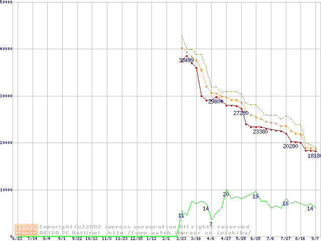Athlon MP 1900+ (1.6GHz) リテールパッケージの価格推移