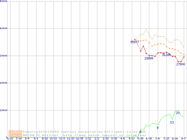 メモリ主要製品(最安値1万円以上)の最安値推移