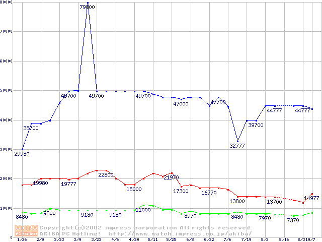 | [↑前グラフ]: | PC133 SDRAM DIMM CasLatency=3 ECC対応の最安値推移 |