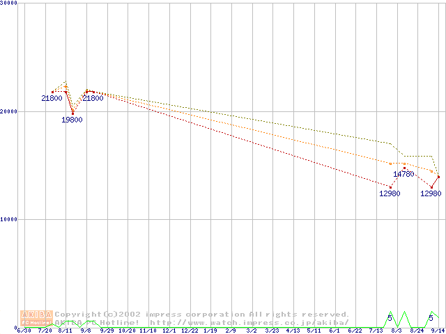 Socket 370 (FC-PGA,FSB 133MHz,L2 256KB)の最安値推移