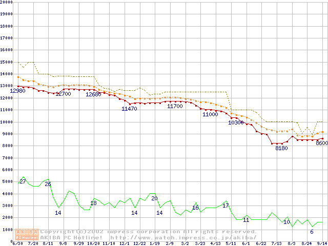 WD Caviar (7200rpm,UltraATA/100,20GB/Platter)の最安値推移