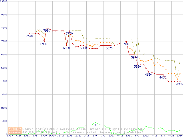Socket 370 (PGA,FSB 133MHz,L2 64KB)の最安値推移