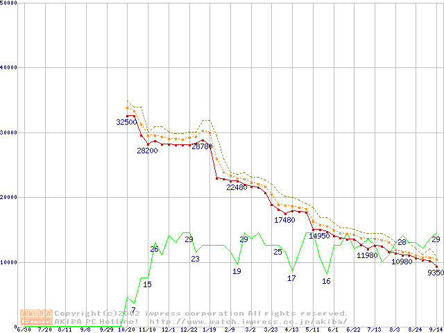 Athlon XP 1800+ (1.53GHz) リテールパッケージの価格推移