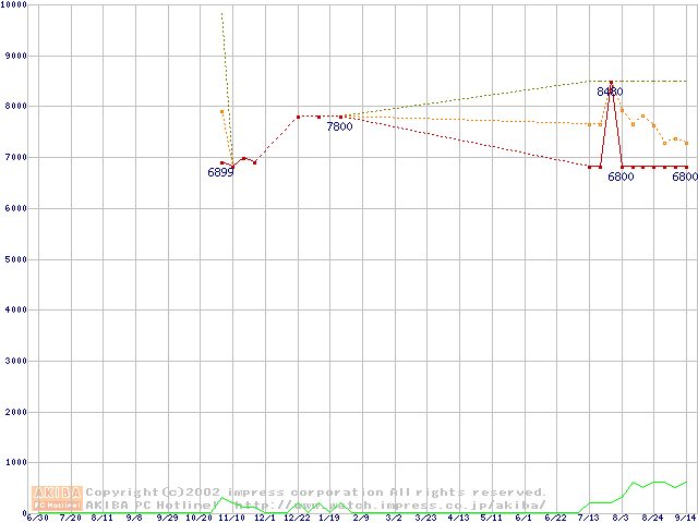 Socket A (OPGA,FSB 200MHz,L2 256KB)の最安値推移