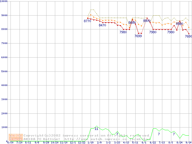 Socket 370 (PGA,FSB 133MHz,L2 64KB)の最安値推移