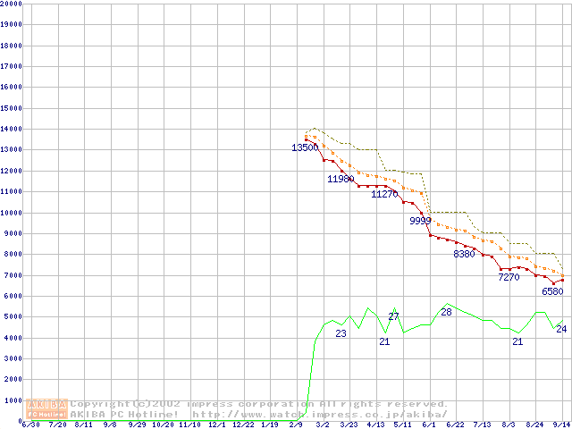 Socket A (Morgan,PGA,FSB 200MHz,L2 64KB)の最安値推移