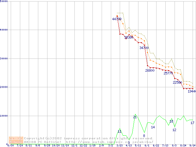 Athlon MP 2000+ (1.67GHz) リテールパッケージの価格推移