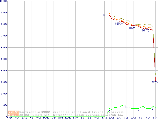 Socket 603 (micro-PGA,L2 512KB,Hyper-Threading,Prestonia)の最安値推移