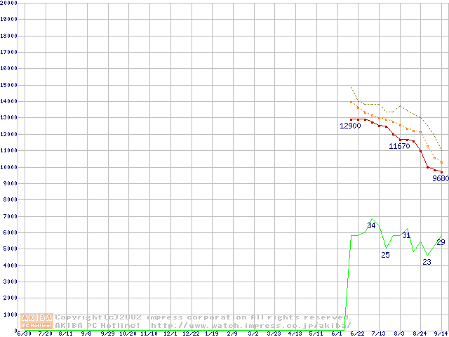 Socket 478 (micro-PGA,FSB 400MHz,L2 128KB,Willamette)の最安値推移