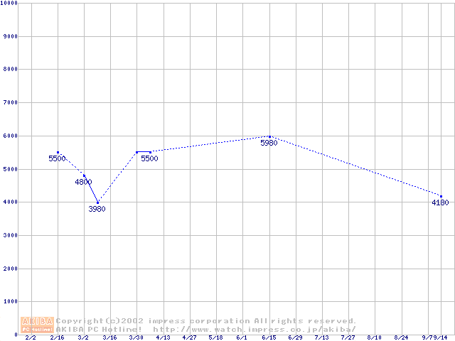 | [↑前グラフ]: | Socket 370 (FC-PGA,FSB 100MHz,L2 128KB)の最安値推移 |