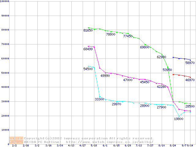 | [↑前グラフ]: | PC1066 DRDRAM RIMM ECC対応の最安値推移 |