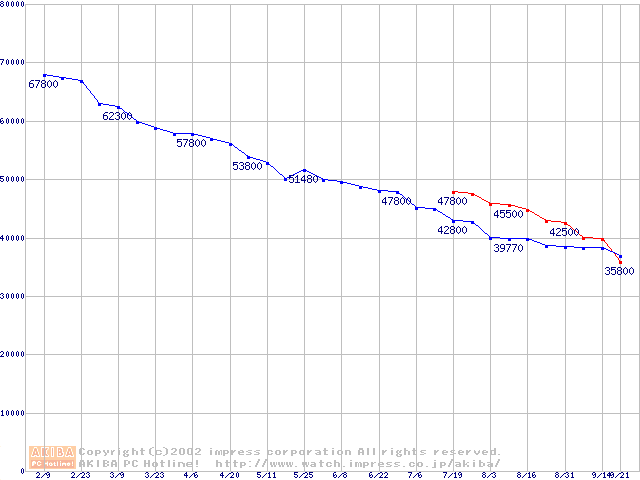 | [↓次グラフ]: | 2.5インチHDD 10GB未満(9.5mm厚)の最安値推移 |