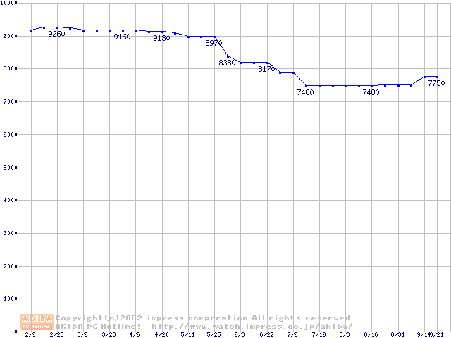 | [↓次グラフ]: | HDD 30GB~40GB未満(7200rpmクラス)の最安値推移 |