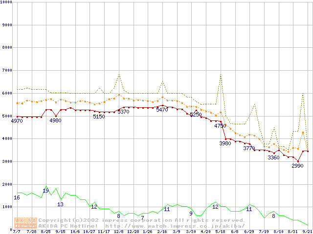 Socket A (Spitfire,PGA,FSB 200MHz,L2 64KB)の最安値推移