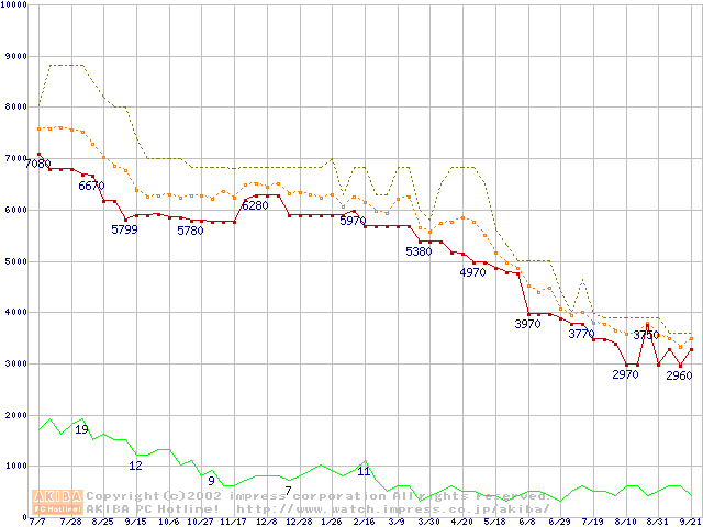 Socket A (Spitfire,PGA,FSB 200MHz,L2 64KB)の最安値推移