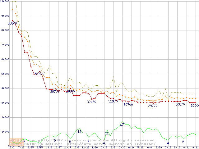 PC800-45 DRDRAM RIMM ECC対応の最安値推移